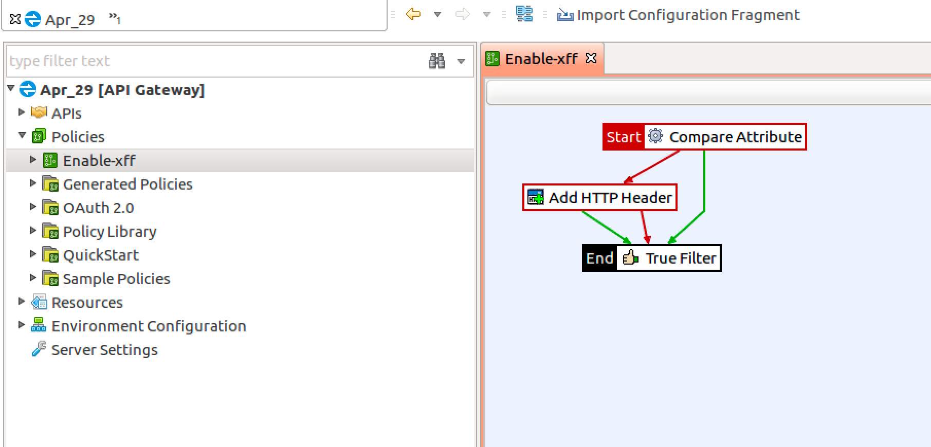 After importing the Axway policy, deploy the XFF policy