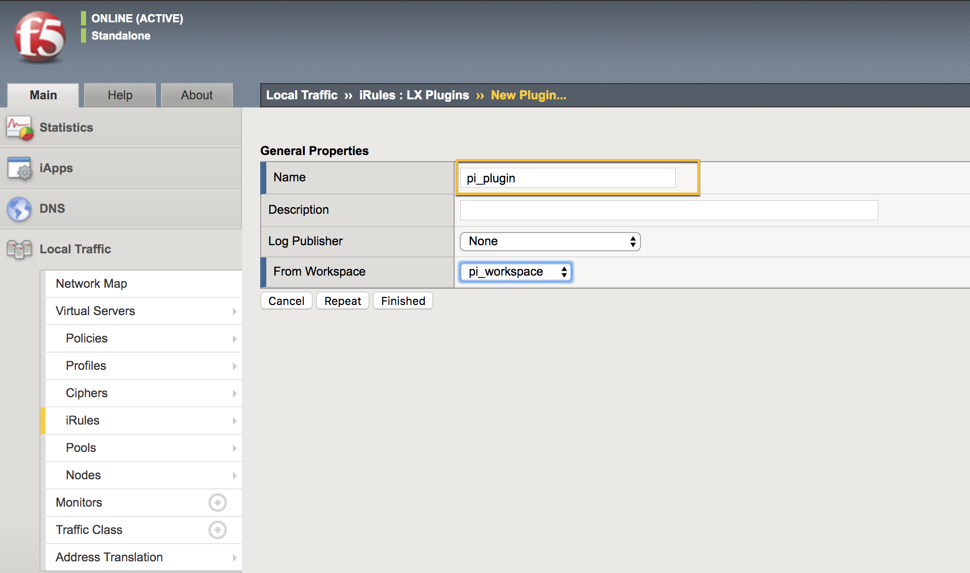 1. Navigate to Local Traffic → iRules → LX Plugins.